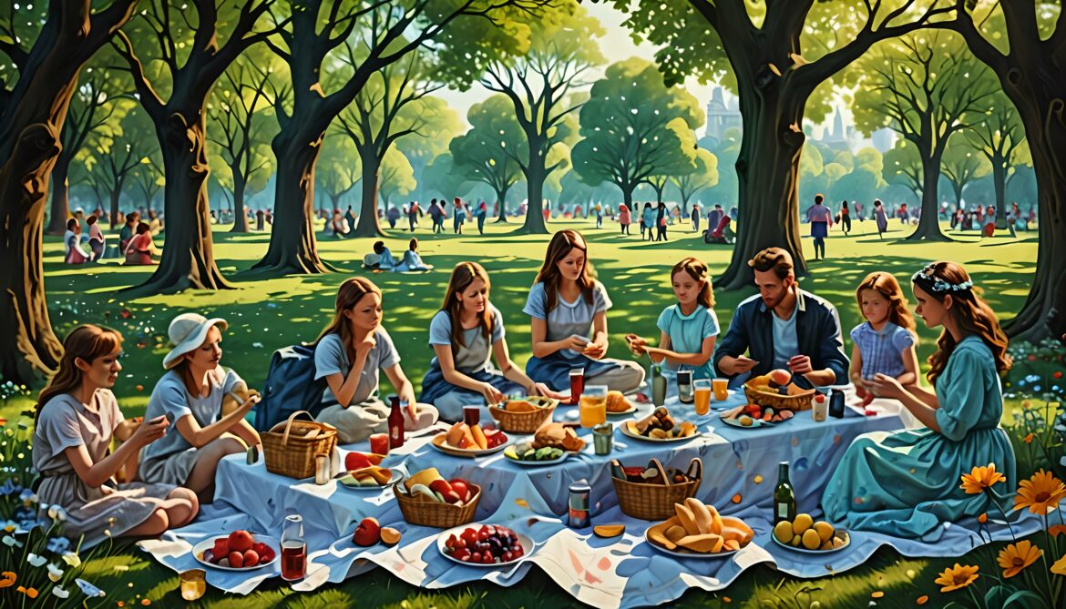 On a bright and sunny day, Mia decided to treat herself to a delightful picnic in the park, surrounded by the beauty of nature and the cheerful sounds of laughter and conversation. Armed with a basket filled with delicious snacks and a cozy blanket, she set out to find the perfect spot to enjoy her leisurely afternoon.